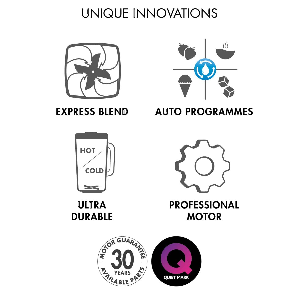Met de Blender worden uw smoothies, soepen en bijv. pannenkoekenbeslag zeer smeuïg en glad van textuur.