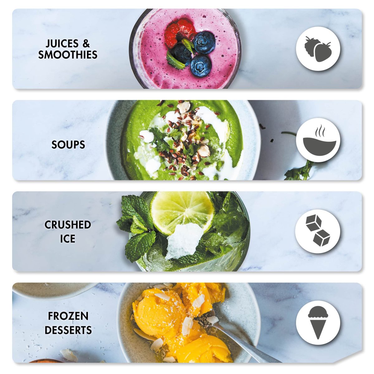 U kunt er ook gestampt ijs en snelle ijsdesserts mee maken.