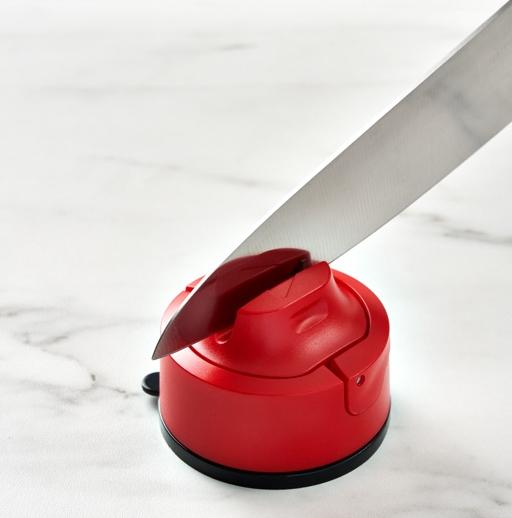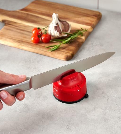 Deze slimme slijper is geschikt voor bijna elk type mes – zelfs gekartelde messen zoals brood- en jachtmessen. De stevige zuignap (PowerGrip) zorgt voor een stabiele bevestiging op je werkblad, zodat je veilig handsfree kunt slijpen. Na gebruik berg je hem makkelijk op in een lade of kast.