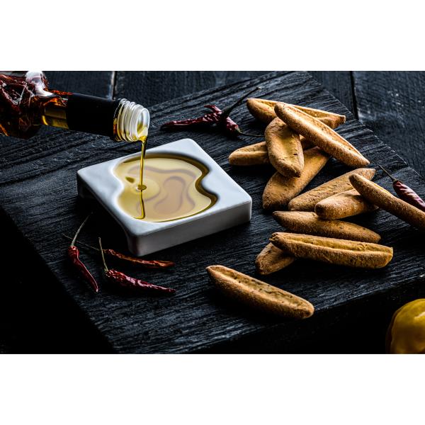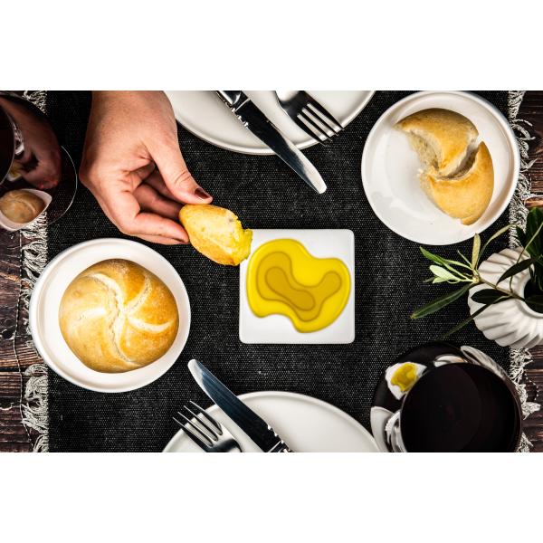 Breng een artistiek tintje aan uw tafel met deze elegante keramische dipschaaltjes. Elk schaaltje heeft een uniek abstract patroon met trapsgewijze niveaus, waardoor olijfolie en andere dips subtiel van kleur veranderen van licht naar donker. Perfect voor het dippen van (stok)brood en een ideaal cadeau voor de fijnproever in uw leven.