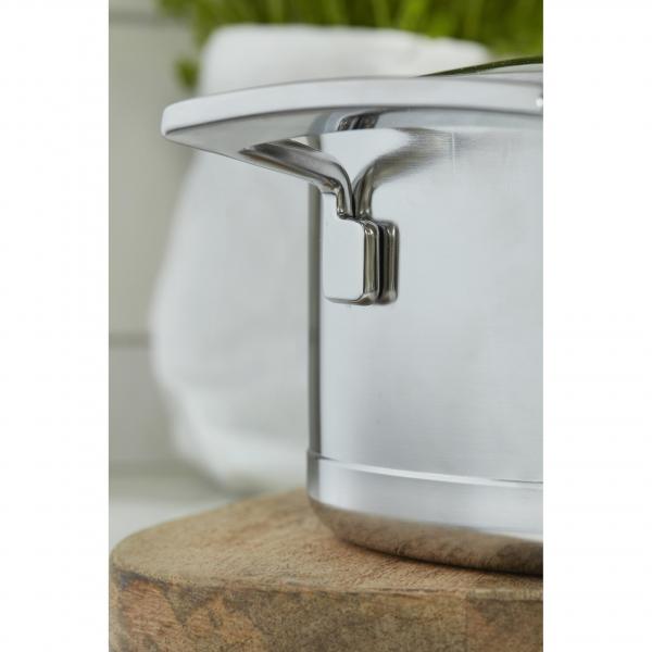 Dat een deksel gebruiken tijdens het koken veel energie bespaart, was je beslist nog niet ontgaan. De reeks Demeyere Silver is uitgerust met een extra isolerend dubbelwandig deksel, waardoor kostbare warmte en vitamines nog minder verloren gaan. Bovendien wordt de gaartijd verkort. De greep blijft ook langer koel.