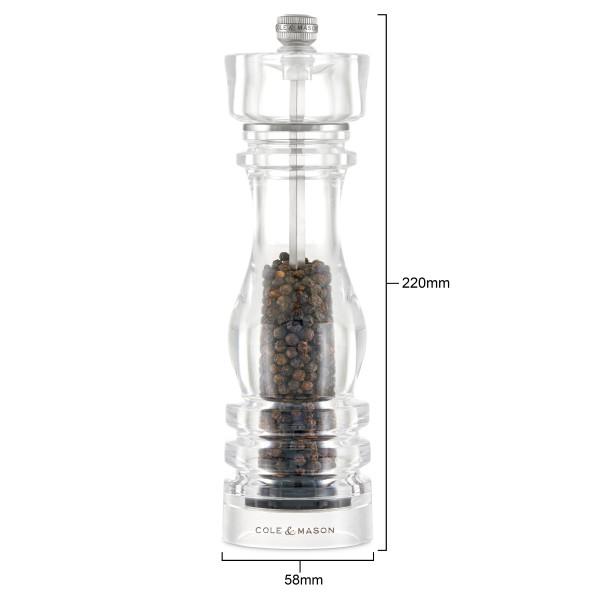 De London pepermolen van Cole & Mason combineert een klassiek design met moderne accenten. Gemaakt van duurzaam, helder acryl en geïnspireerd op Art Deco en industriële Britse architectuur. Een tijdloze molen die niet alleen mooi is om te zien, maar ook zorgt voor maximale smaakbeleving.