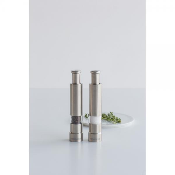 Show je smaak met de Brabantia Profile peper- en zoutmolen in mat roestvrij staal. Een set van twee kleine, handige molens, één voor zout en één voor peper. Ideaal om gerechten aan tafel op te peppen.