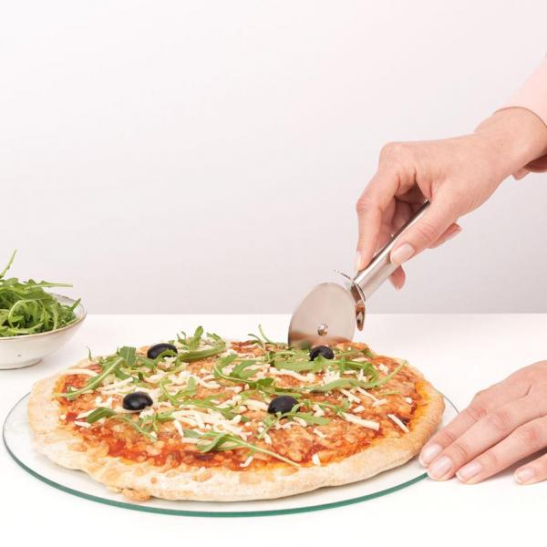 Deze Brabantia deegsnijder / pizzames snijdt je pizza in perfecte stukken. Zijn roestvrijstalen wiel is groot en scherp – gemaakt om makkelijk te snijden, zelfs dikke baksels. Deze slimme snijder heeft een geïntegreerde vingerbescherming, zodat je vingers nooit in de buurt van het draaiende mes komen. Lekker bezig!