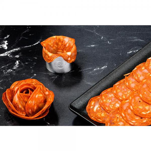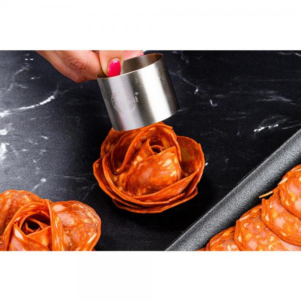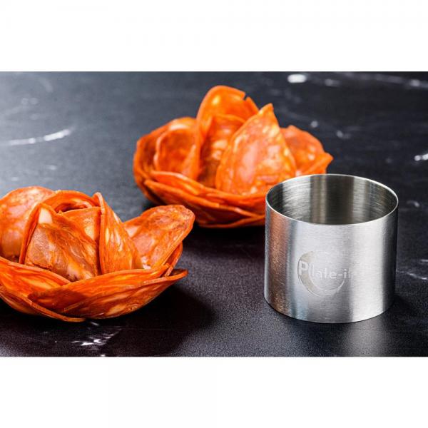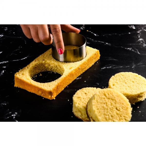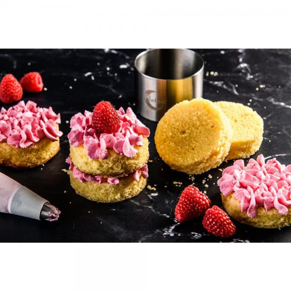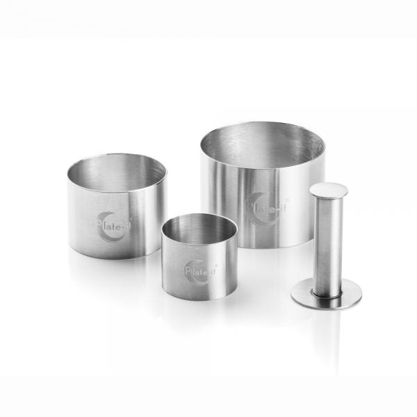De ronde bakringen van Plate-it zijn perfect om cake mee uit te steken of ingrediënten cirkelvormig op te maken op je bord. Met behulp van de pusher wordt de vulling ook gemakkelijk weer uit de vorm geduwd.