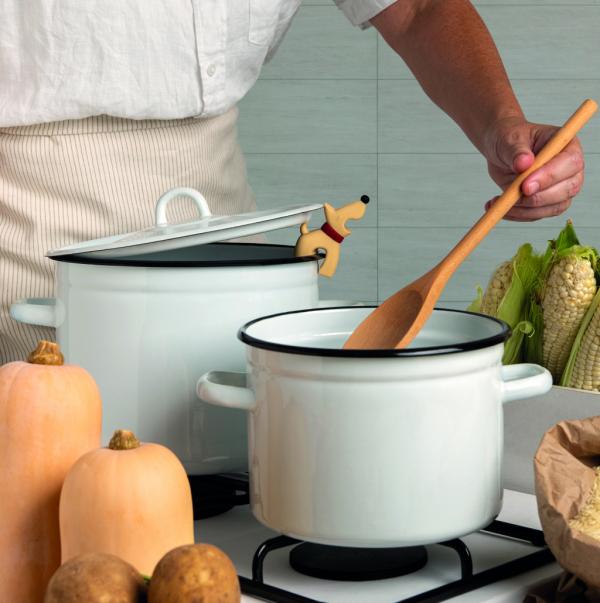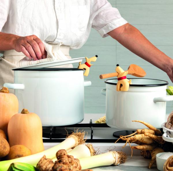 Maar Buddy doet meer dan alleen lepelwacht houden: plaats hem op de rand van je pan en hij tilt het deksel net genoeg op om stoom te laten ontsnappen. Zo voorkom je overkoken en kun je met een gerust hart de keuken in.