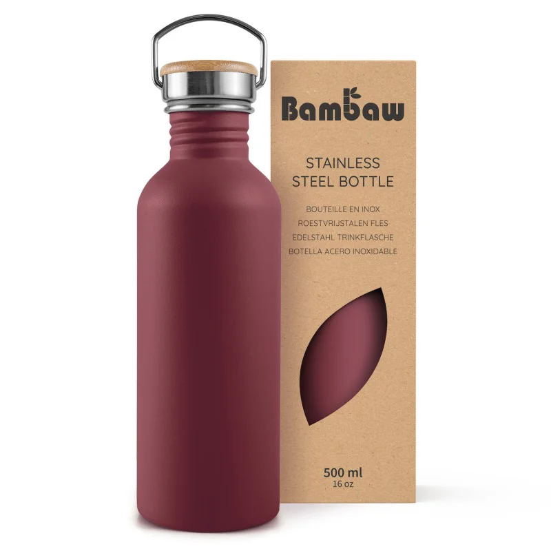 De gekleurde flessen van Bambaw zijn bedekt met een poedercoating, een voedselveilige hars die volledig veilig is en geen schadelijke chemicaliën zoals BPA bevat. Heb je liever een ongecoate versie, klik dan hier.