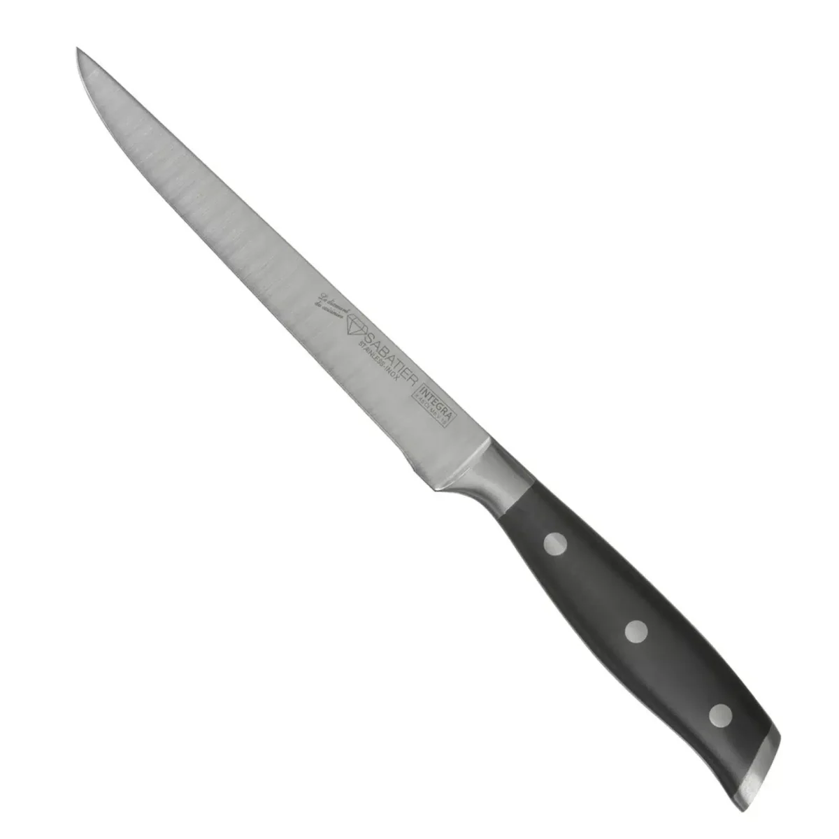 Het Integra uitbeenmes van Diamant Sabatier heeft een smal en flexibel lemmet met een scherpe punt. Deze eigenschappen maken het mes perfect om heel gedetailleerd tussen het vlees en het bot te snijden. Ook het onthuiden van vlees en het verwijderen van pezen en vet wordt appeltje-eitje met dit Integra uitbeenmes.