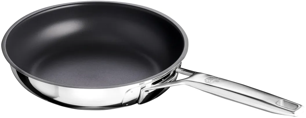 Professionals gebruiken meestal ongecoate roestvrijstalen pannen omdat ze duurzaam zijn, bestand zijn tegen hoge temperaturen en gemakkelijk schoon te maken zijn. Maar wie wil er tegenwoordig nog zonder het gemak van een antiaanbaklaag? Het maakt bakken gemakkelijker en beschermt tegen aanbranden en aanbakken, waardoor gerechten zelfs voor onervaren koks gemakkelijker te bereiden zijn. Aan de andere kant heeft het ook nadelen. Antiaanbaklagen mogen niet te heet worden en vereisen een zorgvuldige behandeling. Zelfs even roeren met een metalen lepel wordt afgeraden. Maar hoe voorzichtig u ook bent, een conventionele antiaanbaklaag is een verbruiksartikel dat na verloop van tijd slijt en uiterlijk na een paar jaar zijn effectiviteit verliest.