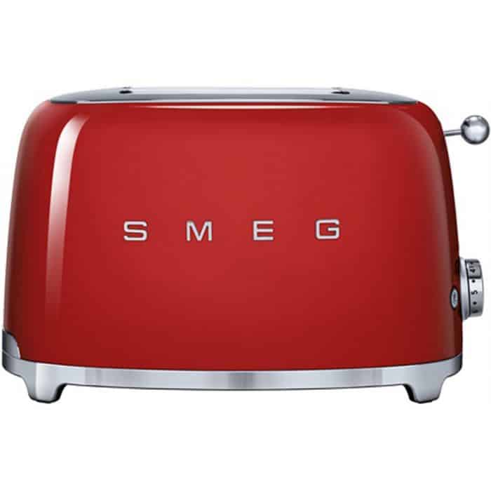 De Smeg 50’s style broodrooster is vervaardigd uit rood gepoedercoat staal en kunststof, is voorzien van 2 sleuven en biedt plaats aan 4 boterhammen tegelijkertijd. Met een vermogen van 1500 W gebruikt u de broodrooster voor het toasten van brood en bagels of het maken van tosti’s. De broodrooster is 39,4 x 20,8 x 21,5 cm (l x b x h).