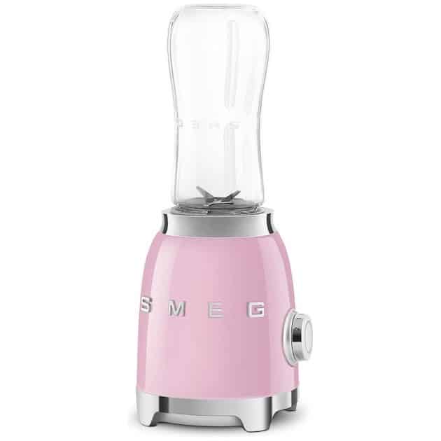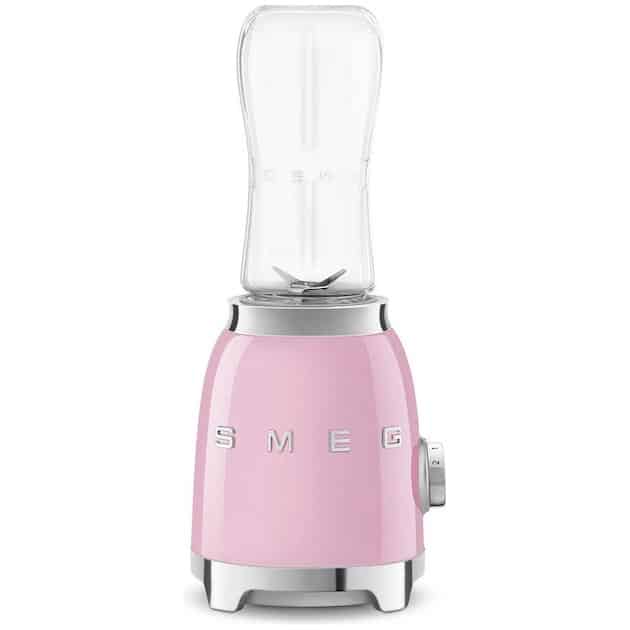 Met de Smeg personal blender heb je in een handomdraai je smoothie, milkshake, ice-coffee en andere dranken gemaakt. Met de bijgeleverde bekers en doppen kun je je drankje makkelijk meenemen om later op te drinken. Met zijn 300 watt is hij sterk genoeg om zelfs ijs te crushen. Hij heeft 2 snelheden waarmee je dit kan aanpassen aan het type drankje dat je wilt blenden. Kenmerkend is natuurlijk ook bij dit product het jaren 50 design die geheel in de lijn van alle andere Smeg apparaten ligt.