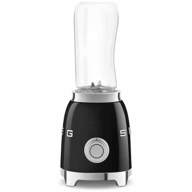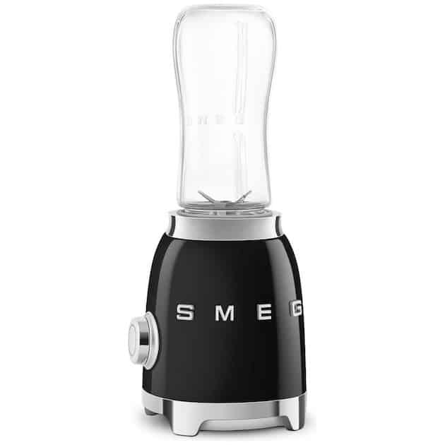 Met de Smeg personal blender heb je in een handomdraai je smoothie, milkshake, ice-coffee en andere dranken gemaakt. Met de bijgeleverde bekers en doppen kun je je drankje makkelijk meenemen om later op te drinken. Met zijn 300 watt is hij sterk genoeg om zelfs ijs te crushen. Hij heeft 2 snelheden waarmee je dit kan aanpassen aan het type drankje dat je wilt blenden. Kenmerkend is natuurlijk ook bij dit product het jaren 50 design die geheel in de lijn van alle andere Smeg apparaten ligt.
