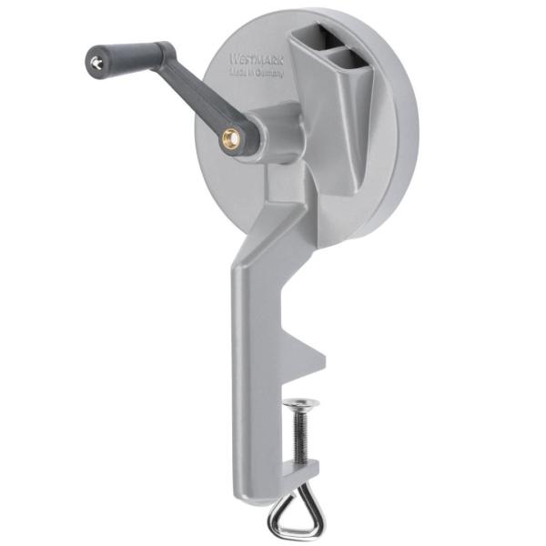 Deze snijbonenmolen van Westmark is handig voor het snel en eenvoudig snijden van verse snijbonen. De molen heeft zeer scherpe geharde messen, en kan 2 bonen tegelijkertijd snijden. De tafelklem houdt de molen stevig op zijn plaats tijdens het snijden. De molen is gemaakt van hoogwaardig aluminium en bekleed met een voedselveilige coating. Na gebruik draai je de slinger los, zodat je de molen en het mes onder de kraan goed kunt schoonspoelen.