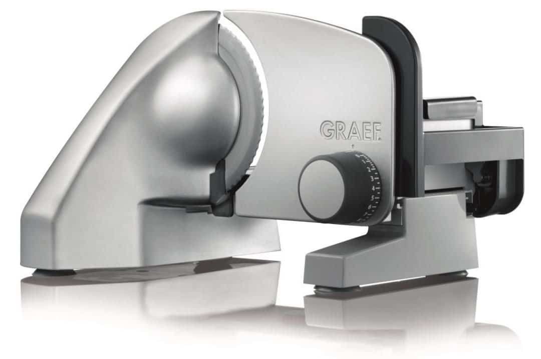 Deze snijmachine ‘Classic C10’ van Graef is een universele snijmachine waarmee je eenvoudig en snel verse vleeswaren, kaas, groenten, fruit en brood snijdt. Want wat is lekkerder dan vers gesneden brood of vleeswaren, precies op jouw favoriete dikte gesneden? Deze machine is de beste keuze wanneer de machine veelvuldig of voor zwaardere snijtaken (vette, plakkende kaas of vleeswaren) wordt gebruikt. De snijdikte is naar wens instelbaar van 0 – 20 mm door de grote draaiknop te verdraaien. De bijgesloten kunststof restenhouder beschermt je vingers tijdens het snijden, en de machine is voorzien van een kinderbeveiliging waarmee de slede vergrendeld kan worden wanneer deze niet gebruikt wordt. Het snijden gaat comfortabel dankzij de moment- en duurschakelaar. Deze is geïntegreerd in de slede en te gebruiken voor kort of langdurig snijden. Deze snijmachine is gemaakt uit een combinatie van metaal en kunststof en is voorzien van een kabeldepot. Dankzij de afneembare slede maak je de machine na gebruik eenvoudig schoon. Een kunststof opvangschaal is inclusief. Deze snijmachine heeft een gegolfd roestvrijstalen mes; een glad mes voor deze machine is los verkrijgbaar en eenvoudig te wisselen.