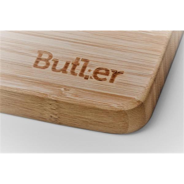 Deze bamboe snijplank van Butler is geschikt voor al je dagelijkse snijwerk in de keuken en perfect voor het presenteren van hapjes. De snijplank is gemaakt van de beste kwaliteit bamboe, een duurzaam en natuurlijk materiaal dat dankzij de harde en dichte structuur nauwelijks vocht opneemt en bovendien je messen spaart. De snijplank is aan beide zijden te gebruiken. Dankzij de natuurlijke, robuuste uitstraling past de snijplank zowel in de moderne als de klassieke keuken. Op het label van de snijplank vind je duidelijke tips voor het juiste onderhoud en gebruik.