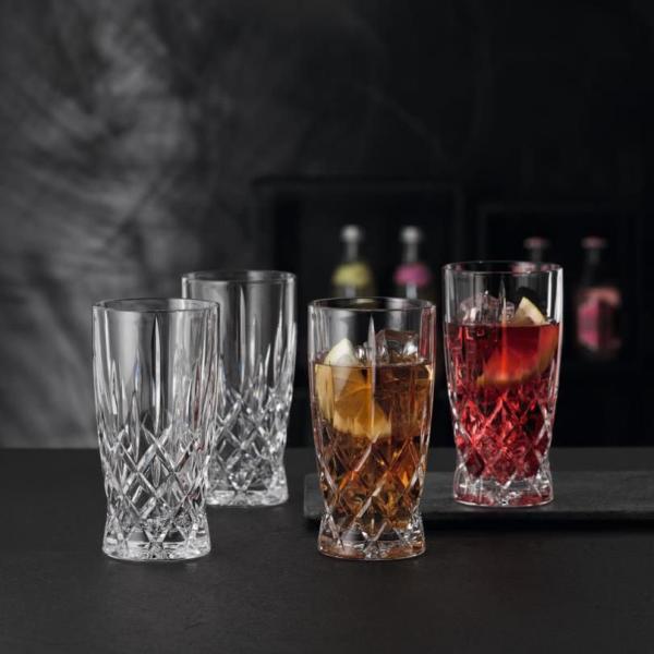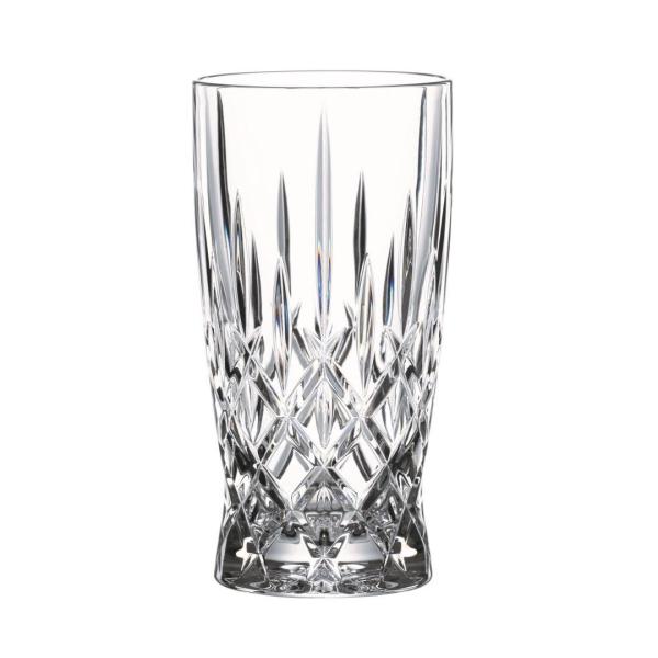 Dit softdrinkglas uit de serie ‘Noblesse’ van Nachtmann is perfect voor softdrinks, longdrinks en cocktails. Dit bijzonder luxe, prachtig geslepen glas trekt alle aandacht naar de voet. Hier zie je een helder ruitvormig patroon dat verder naar boven overgaat in langwerpige figuren. Eenmaal gevuld staat er pure luxe bij jou op tafel. Deze set bevat 4 softdrinkglazen, ieder met een inhoud van 350 milliliter.