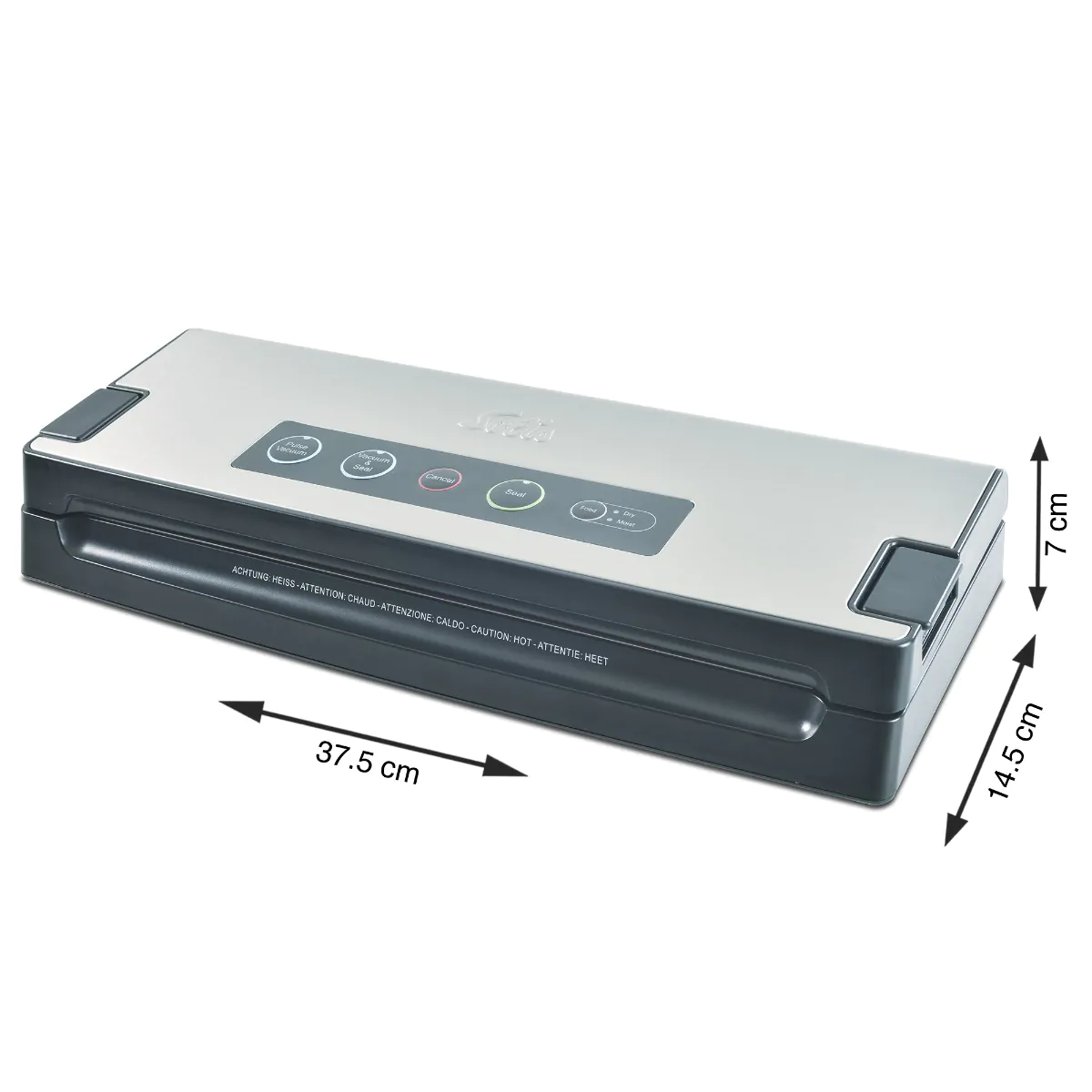 Het hygiënische ontwerp zie je terug in een vingerafdrukbestendige afdekking van hoogwaardig roestvrij staal en een bedieningspaneel dat gemakkelijk en tegelijkertijd hygiënisch van voedselresten kan worden gereinigd. Een geïntegreerde lekbak vangt op betrouwbare wijze vocht op dat tijdens het vacumeerproces vrijkomt uit vochtig voedsel. De lekbak is uitneembaar voor eenvoudige reiniging.