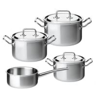 Spring Brigade premium 4 delig pannenset (kookpan 16,20cmhoog,20cm laag, sauspan 20cm). Spring vindt zijn oorsprong in de Horeca. Het belangrijkste kenmerk van een Spring pan is het meerlagen materiaal dwz een snelle en egale warmtegeleiding, geschikt voor alle warmtebronnen en oven, ronde vorm voor een eenvoudige reiniging. Te gebruiken om te stoomkoken, bakken, braden, stoven.