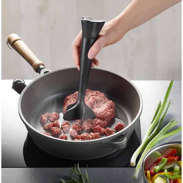 Het tijdrovende werk van het fijnhakken van gehakt in potten en pannen behoort nu tot het verleden. De hittebestendige keukenhulp WHACKER zorgt voor een gelijkmatig kookresultaat en ligt toch comfortabel in de hand.