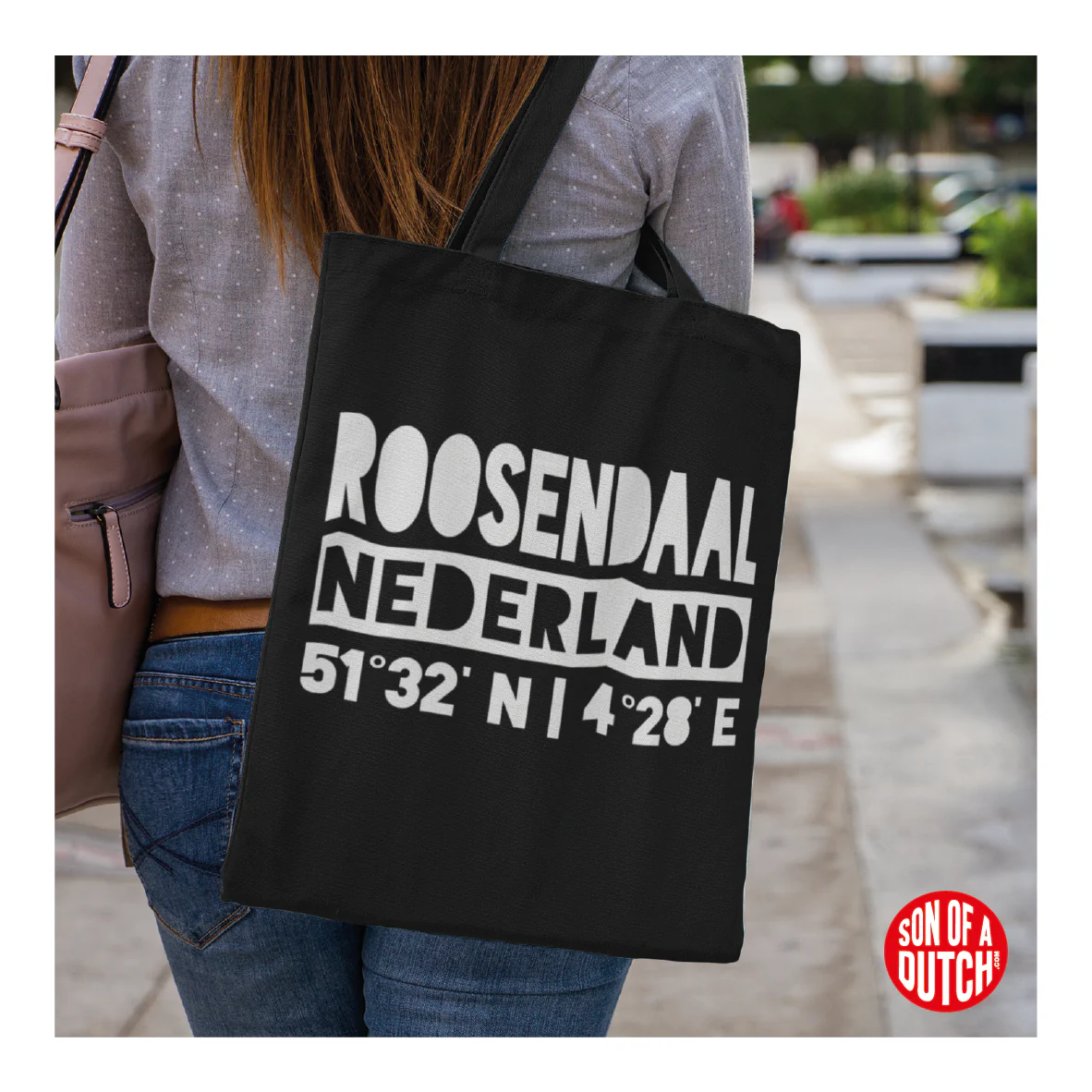 Stevige katoenen tas met de coördinaten van Roosendaal.