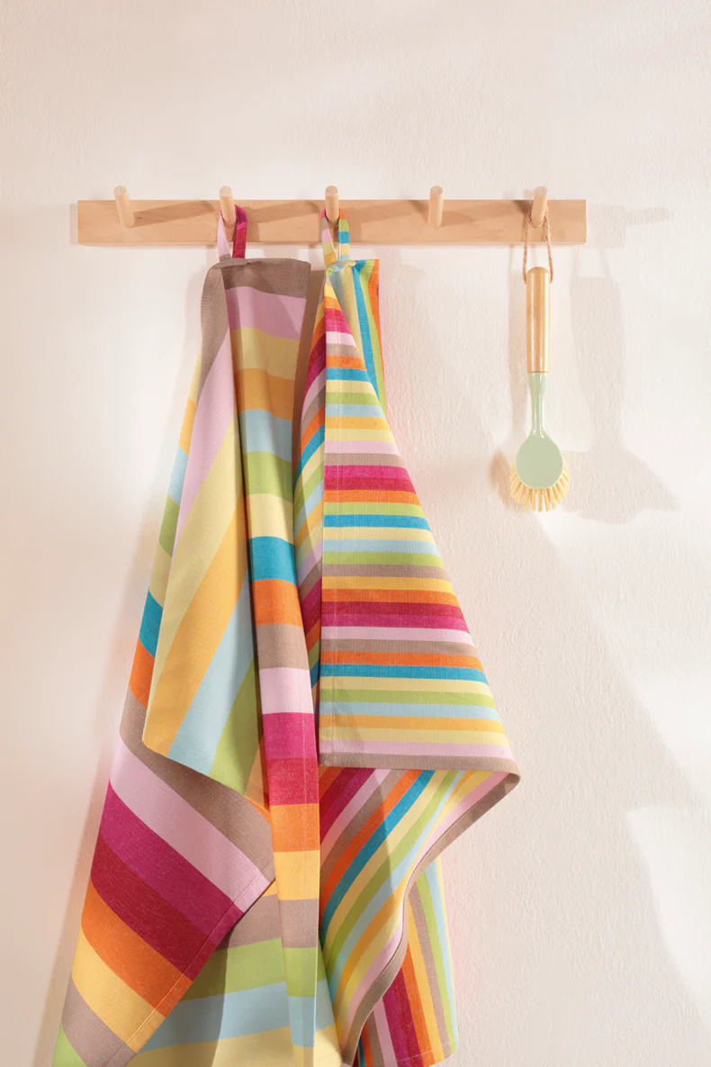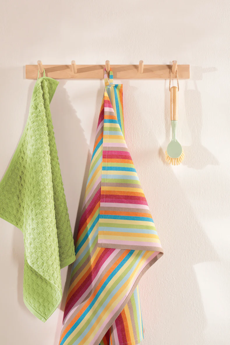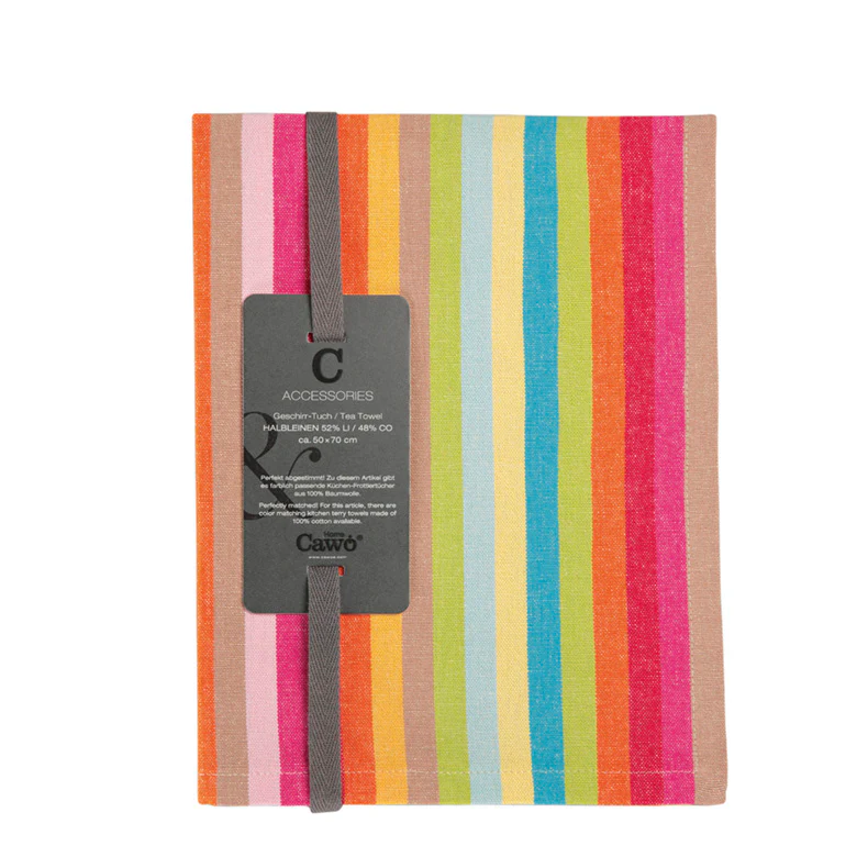 Breng kleur én kwaliteit in je keuken met de Cawö Cuisine Lifestyle strepen theedoek. De moderne, meerkleurige strepen zorgen voor een vrolijke noot in elk interieur, terwijl het hoogwaardige katoen moeiteloos vocht opneemt en heerlijk zacht aanvoelt. Een stijlvolle blikvanger die koken en afdrogen nét wat leuker maakt.