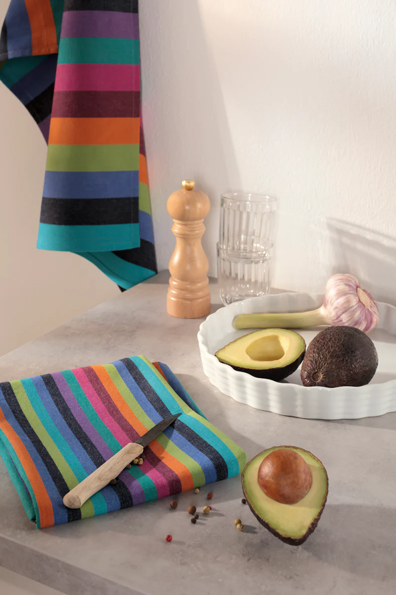 Breng kleur én kwaliteit in je keuken met de Cawö Cuisine Lifestyle strepen theedoek. De moderne, meerkleurige strepen zorgen voor een vrolijke noot in elk interieur, terwijl het hoogwaardige katoen moeiteloos vocht opneemt en heerlijk zacht aanvoelt. Een stijlvolle blikvanger die koken en afdrogen nét wat leuker maakt.
