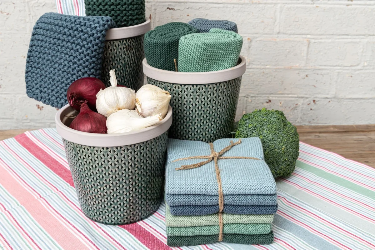 Tip: De vaatdoek is perfect voor gebruik op het aanrecht of als algemene poetsdoek. Een andere manier om deze mooie doeken te gebruiken is als servet. De structuur van de vaatdoek en de prachtige kleuren maken van de vaatdoek een perfect item om een beetje stijl toe te voegen aan de eettafel! Rol ze op en knoop ze samen of plaats ze onder een schaal of bord. Op deze manier creëer je in een handomdraai een extra dementie aan je eettafel.