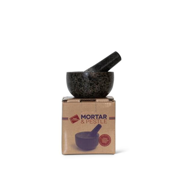 Deze kleine granieten vijzel van Inno Cuisinno is perfect voor het malen en mengen van kleinere hoeveelheden kruiden en specerijen. Door ze pas vlak voor gebruik te malen, geven kruiden en specerijen de meest intense smaken en volle aroma’s aan je gerechten. De vijzel blijft stevig op zijn plaats staan tijdens het malen en het harde graniet maakt hem ook geschikt voor harde ingrediënten als peperkorrels en komijn. De vijzel is geschikt voor zowel droge als natte ingrediënten en na gebruik was je hem af met een zachte borstel en warm water zonder afwasmiddel.