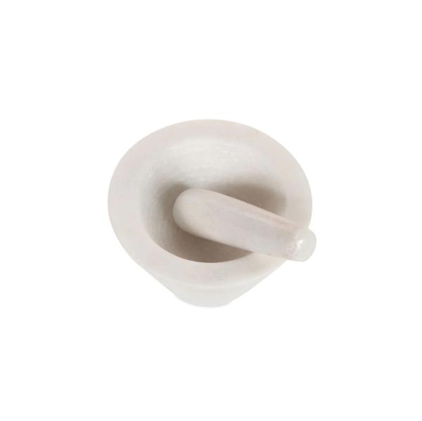 Met de Vijzel Spicy Wit voeg je niet alleen een handige tool toe aan je keuken, maar ook een stijlvolle eyecatcher. Deze kleine vijzel en stamper zijn gemaakt van hoogwaardig wit marmer, wat zorgt voor een luxe uitstraling en lange levensduur.