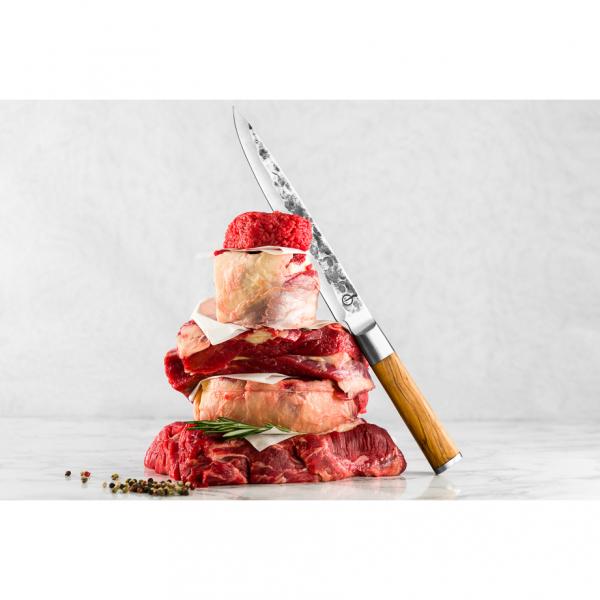 De Olive Forged serie heeft een robuuste en toch subtiele afwerking. De messen worden stuk voor stuk met de hand gesmeed. Elk mes is uniek.