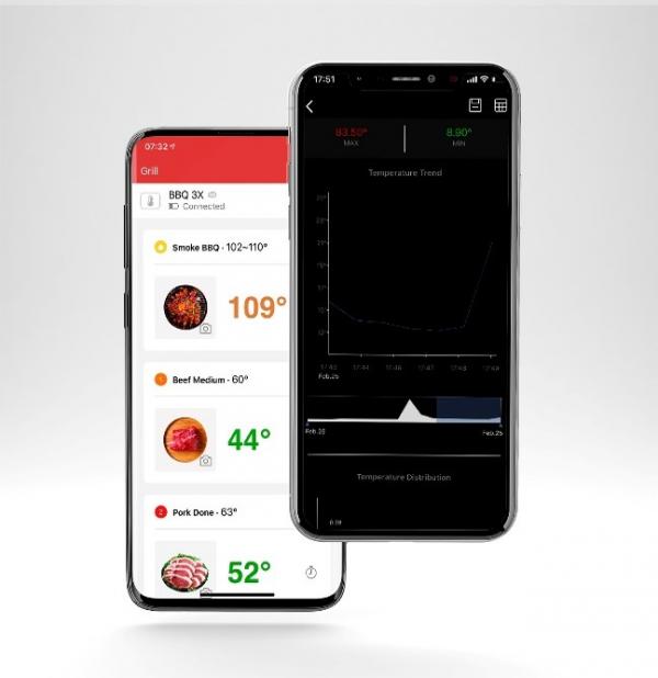 - Voor gelijktijdige bewaking van de kookruimtetemperatuur en de kerntemperatuur van maximaal twee grillgerechten