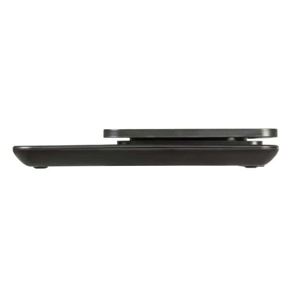 De moderne, platte vormgeving maakt dat de weegschaal makkelijk op te bergen is en dankzij het ophangoog kun je hem ook aan een haak kwijt. De sensor-touchbediening is niet alleen eenvoudig, maar ook hygiënisch doordat er geen kiertjes zijn waarin vuil kan ophopen.