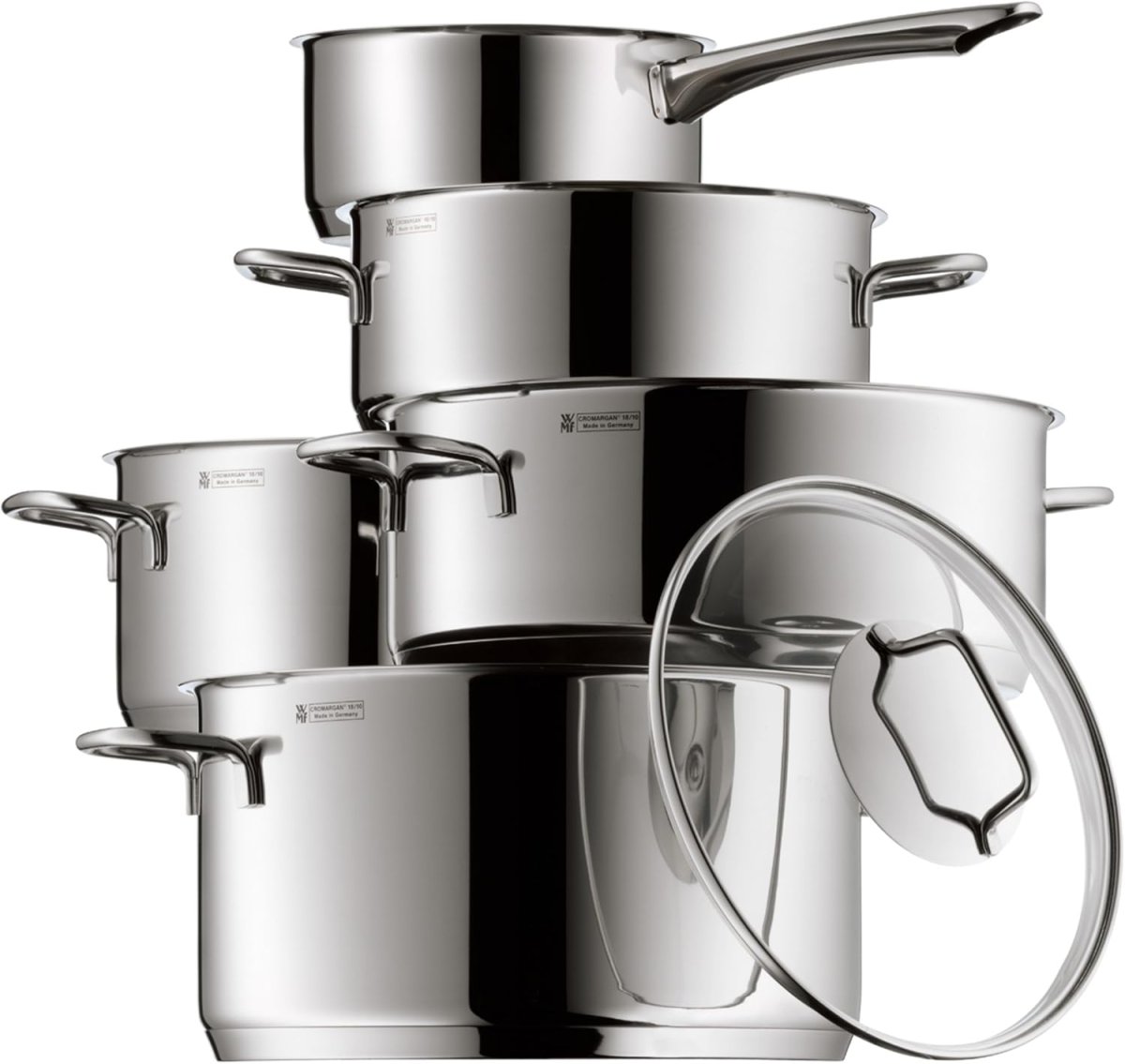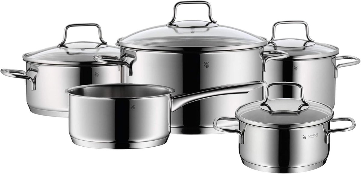 Met de WMF Astoria Pannenset 5-delig haal je een kwalitatieve kookpannenset in huis, dankzij het Cromargan materiaal. Dit materiaal is namelijk duurzaam en is bestand tegen krassen en zuren. De pannenset bestaat uit 1 steelpan en 4 kookpannen. Zo warm je in de steelpan saus op en kook je in de andere kookpannen bijvoorbeeld pasta, rijst of soep. Daarnaast verspreidt de warmte zich snel en gelijkmatig door de pan, dankzij de TransTherm-bodem. Je houdt het kookproces goed in de gaten dankzij de meegeleverde glazen deksels. Handig, zo blijft de warmte binnen in de pan. Verder giet je vloeibare stoffen gemakkelijk af door de brede schenkranden. Ben je klaar met koken? Dan zet je de pannen in de vaatwasmachine. Natuurlijk geschikt voor alle warmtebronnen!