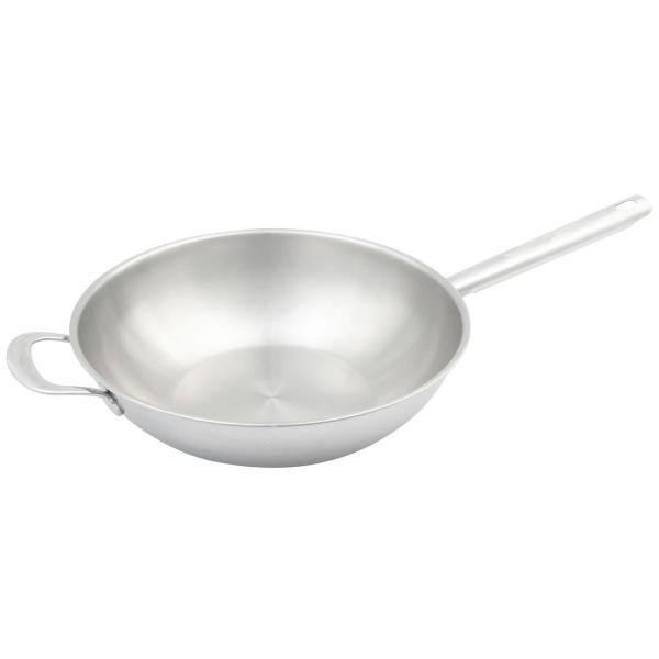 Roestvrijstalen wok met steel en greep. Voorzien van Triply wand, deze bestaat uit meerdere lagen voor een snellere opwarming en warmteverdeling. Blijft ook langer warm.