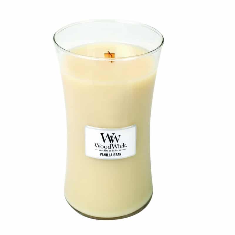 Woodwick Large Candle Vanilla Bean : de WoodWick geurkaars Vanilla Bean is ontspannen met de warme natuurlijke geur van pure vanillebonen.