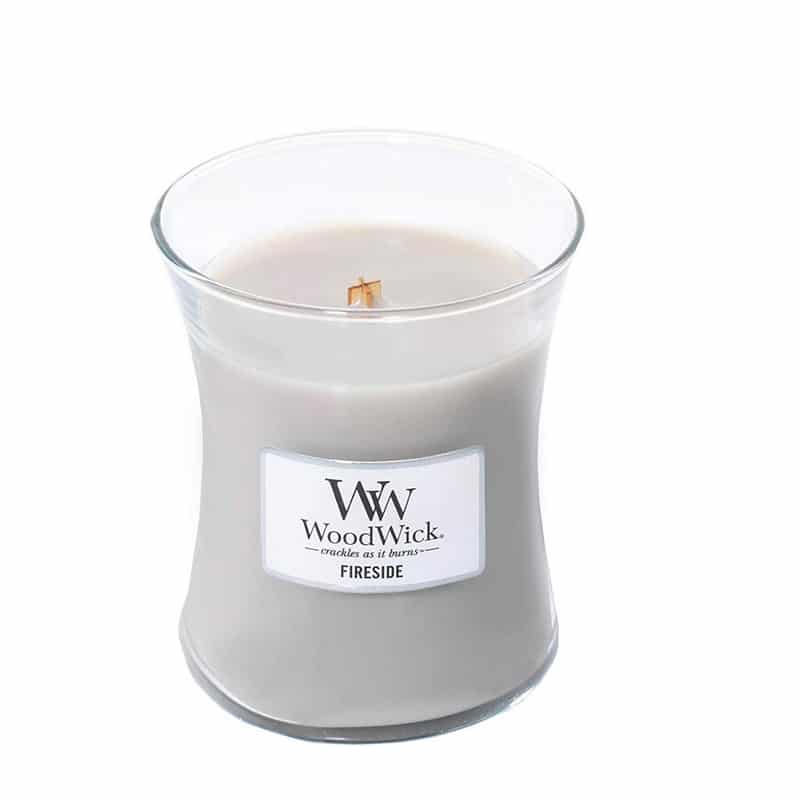 Woodwick Medium Candle Fireside : Woodwick Fireside is de natuurlijke geur van amber, vetiver en musk.