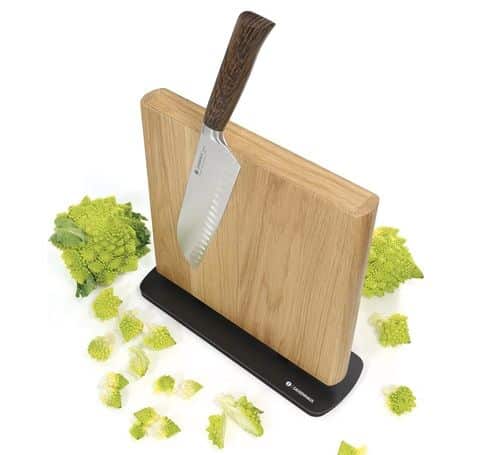 Efficiëntie ontmoet design! Het messenblok van Zassenhaus valt op door de combinatie van bijzonder fraai design en gebruiksgemak. Tot maximaal 10 messen kunnen veilig en plaats besparend worden opgeborgen en zijn dan evengoed altijd binnen handbereik. Doordat het messenblok staat op twee kleine pootjes lijkt het blok een beetje te zweven. Dit Zassenhaus magnetische messenblok Loft is gemaakt van eikenhout en is aan beide zijde te gebruiken. Met een maximale lemmetlengte van 24 cm kan bijna elk mes aan de messenblok gehangen worden.
