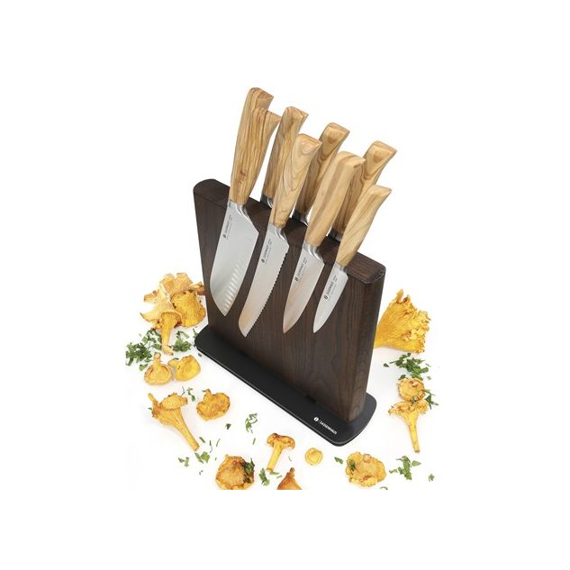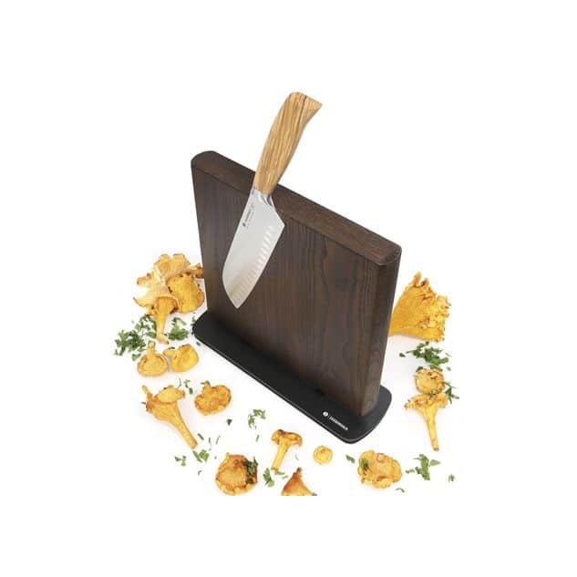 Efficiëntie ontmoet design! Het messenblok van Zassenhaus valt op door de combinatie van bijzonder fraai design en gebruiksgemak. Tot maximaal 10 messen kunnen veilig en plaats besparend worden opgeborgen en zijn dan evengoed altijd binnen handbereik. Doordat het messenblok staat op twee kleine pootjes lijkt het blok een beetje te zweven. Dit Zassenhaus magnetische messenblok Loft is gemaakt van essenhout en is aan beide zijden te gebruiken. Met een maximale lemmetlengte van 24 cm kan bijna elk mes aan de messenblok gehangen worden.