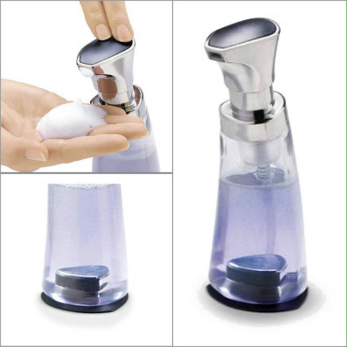 De zeeppomp zet zichzelf vast met een zuignap.