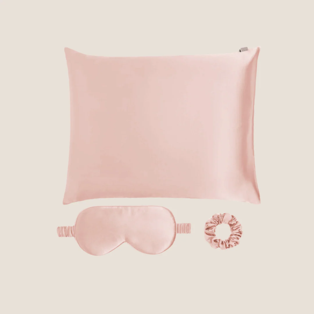 Zacht, koel en rimpelloos. Deze zijden set slaapaccessoires strijkt iedere nacht glad. Een luxe cadeau aan jezelf dat thuishoort in iedere slaapkamer. Het bestaat uit een kussensloop, oogmasker en scrunchie van premium 23 momme moerbei zijde. Een vrij rijk type zijde dat je nachtrust op verschillende manieren een upgrade geeft. Ontdek de voordelen voor je huid, haar en slaap.