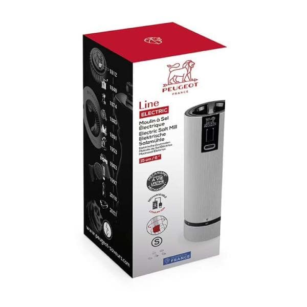 Slim, van het vullen tot het starten, de Line elektrische zoutmolen wordt de perfecte bondgenoot in de keuken om u dagelijks te ondersteunen bij het creëren van uw recepten. Deze nieuwe hightech elektrische molen met een sterke stilistische signatuur verleidt zowel door zijn ontwerp als door zijn prestaties. Compact en biedt optimale handling. Slim, de vulling is geoptimaliseerd dankzij de ingenieuze trechtervorm van de tank. Uitgerust met het door Peugeot gepatenteerde u’Select-verstelsysteem, biedt het een uitzonderlijke maalprecisie. Kies een zeer fijne maling (schaalverdeling op stand 1) om de kruidigheid van de peper te onthullen, kies omgekeerd voor een grovere maling (schaalverdeling op stand 6) om alle aroma’s te ontdekken. Deze elektrische molen is het ideale cadeau om jezelf te geven of te trakteren.