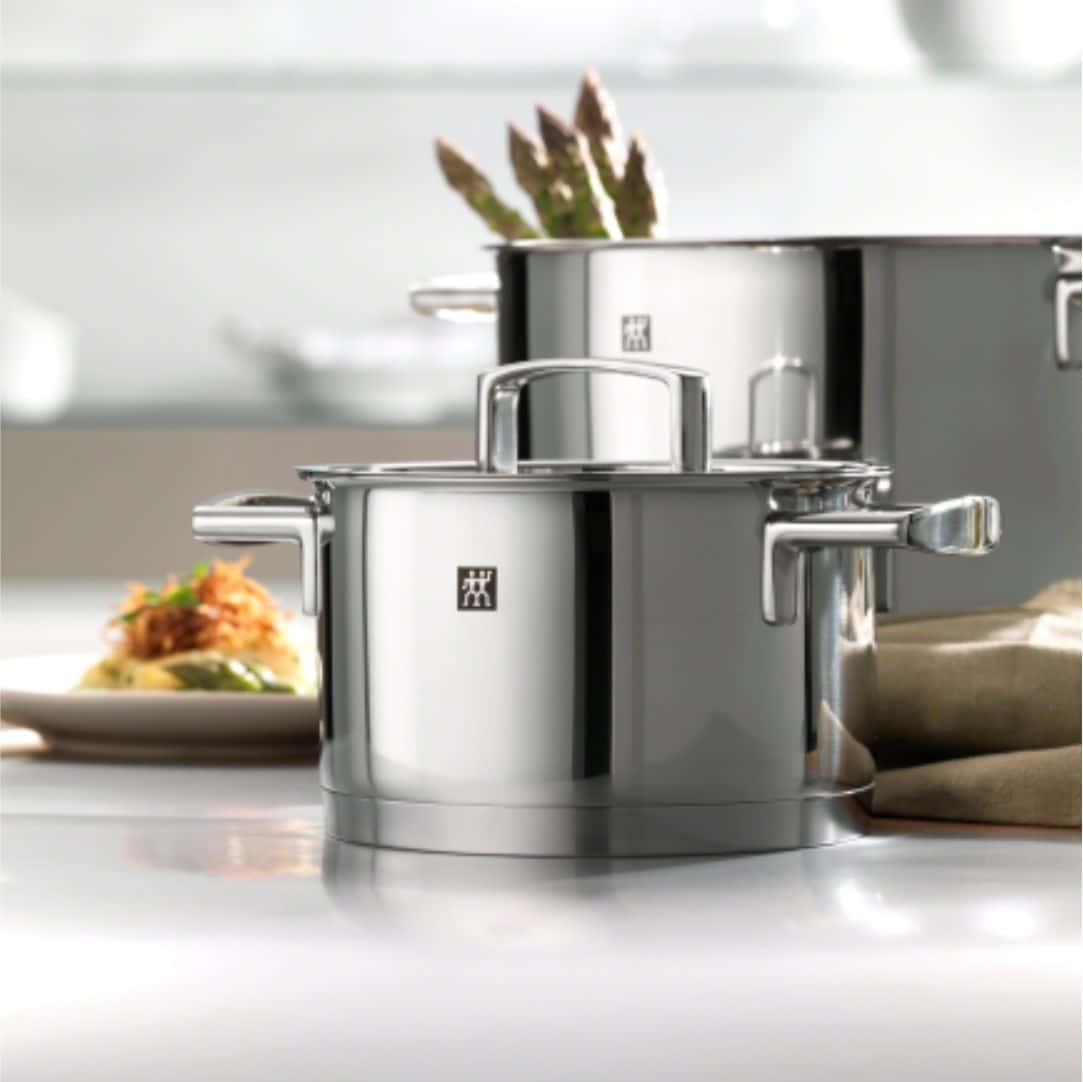 Kook met passie met de Zwilling Passion pannenset! De 5 stevige roestvrij stalen pannen zijn voorzien van een handige maataanduiding en gietrand. Ze hebben een elegant blinkend gepolijst design met ergonomische handgrepen en mogen in de vaatwasser.