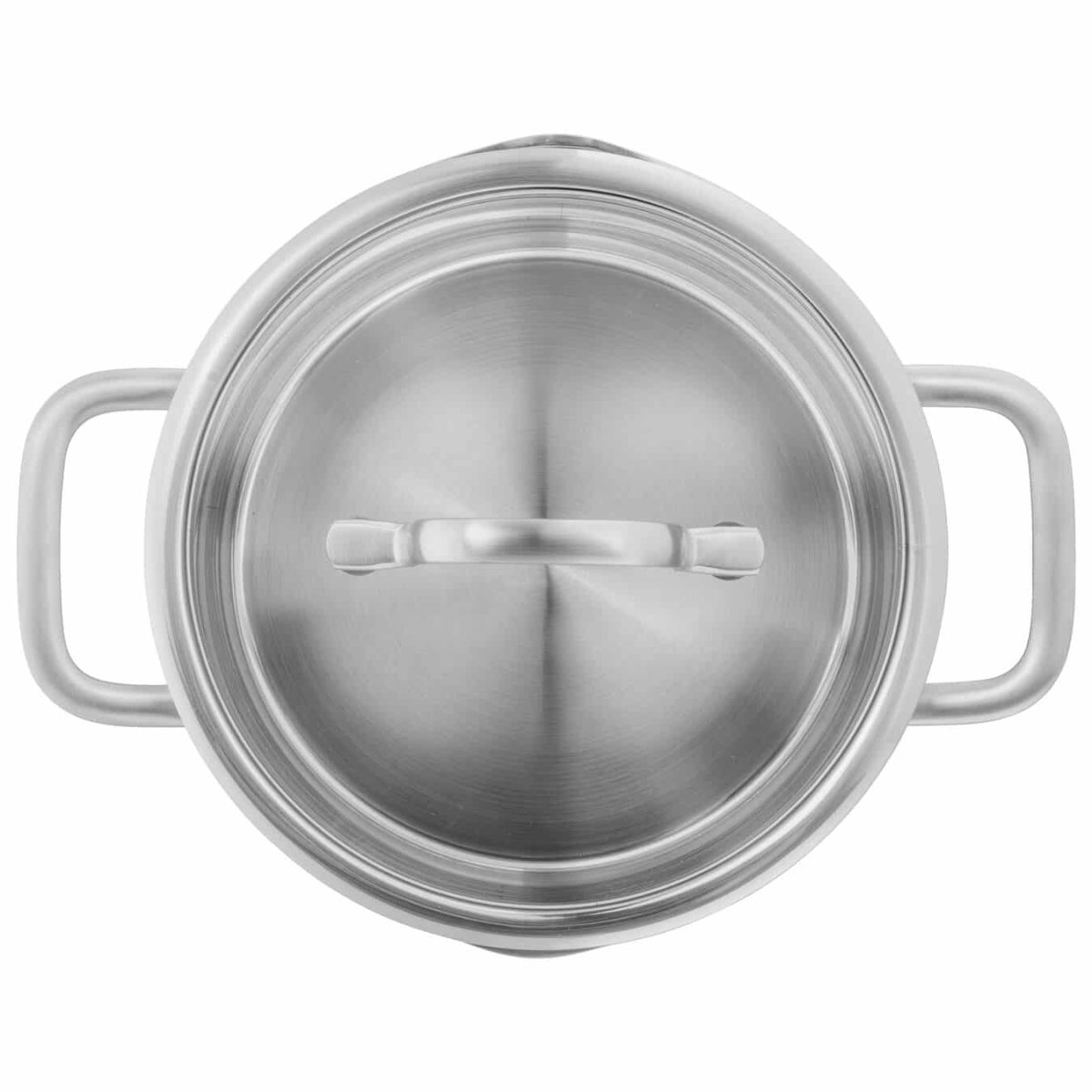 TrueFlow van ZWILLING: Met deze allrounders voor dagelijks gebruik geniet je nog meer van het koken: de vijfdelige pannenset uit de TrueFlow-serie van ZWILLING maakt elke dag opnieuw indruk met zijn hoge kwaliteit en slimme functies. Het hoogwaardige 18/10 roestvrij staal is hygiënisch en smaakneutraal. De energiezuinige Sigma Classic+ sandwichbodem verdeelt de warmte dan weer perfect en aan het nauwsluitende deksel is een praktische schenkteut verwerkt. De kookpotten in drie maten, de stoofpot en de steelpan in deze set mogen uiteraard in de vaatwasmachine en zijn geschikt voor inductiekookplaten. Met afgietsysteem!